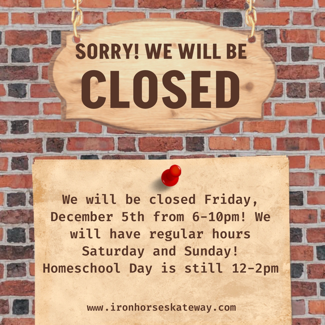 Just a quick heads-up — the rink will be closed this Friday, December 5th from 6–10pm.